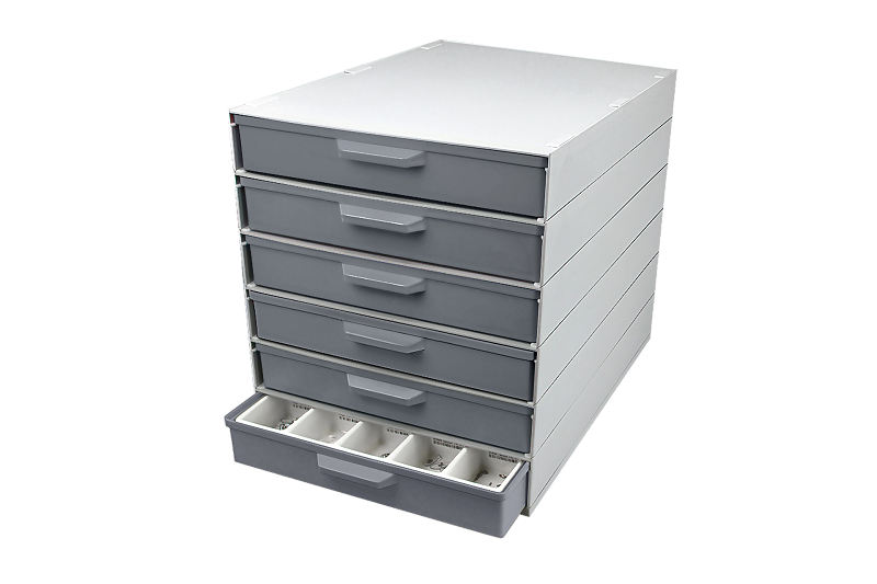 ST0028 modulair ladensystem kunststof grijs [6 laden]